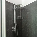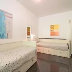 Het appartement omvat zelfvoorzienende faciliteiten, zoals een complete keuken met een koelkast en een oven.